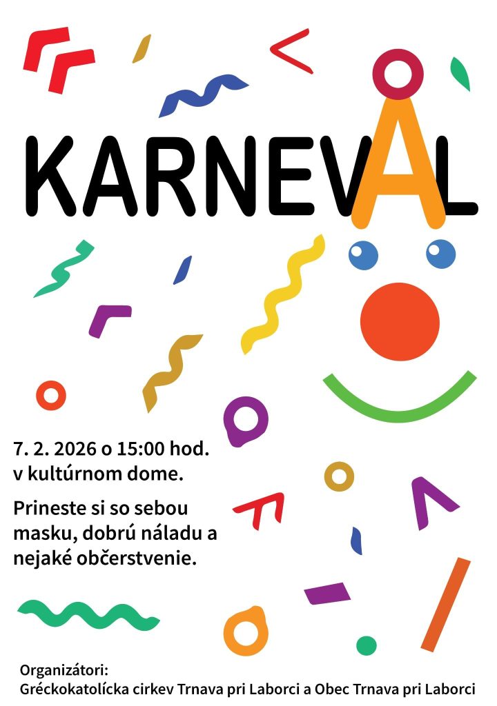 Všetky deti a mládež našej farnosti srdečne pozývame na farský karneval sobotu 7.2. do kultúrneho domu v Trnave pri Laborci so začiatkom o 15:00. Nezabudnite si poriadnu masku, dobrú náladu, súťaživosť, a ak sa viete deliť s kamarátmi, aj niečo malé pod zub.